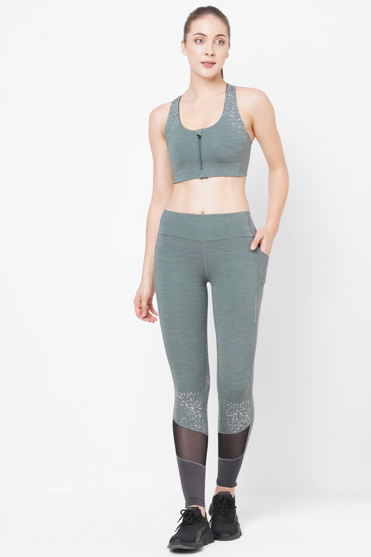 GREY MELANGE FOIL PRINTED ACTIVEWEAR SET