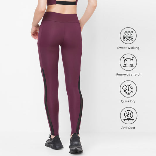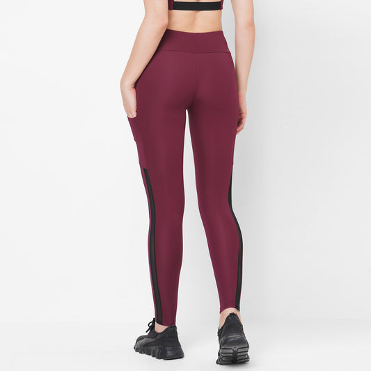 MAROON MESH PANEL 7/8 GO TRAIN TIGHTS