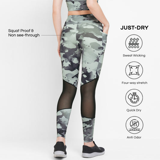 GREY & BLACK CAMO PRINTED MESH PANEL 7/8 WORKOUT TIGHTS
