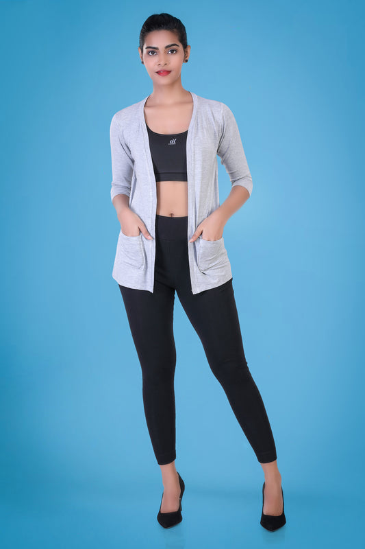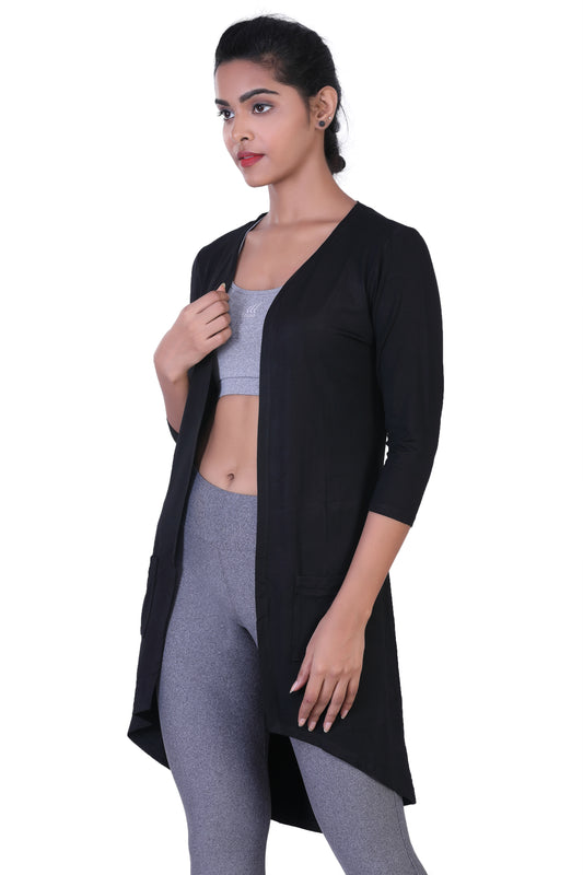 WOMEN'S SOLID LONG LINE SHRUG WITH INSERT POCKETS