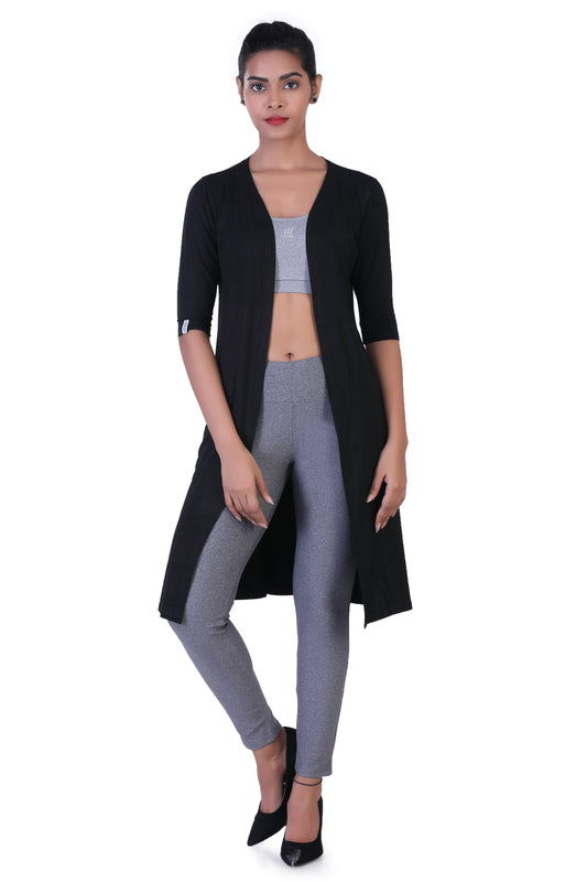 WOMEN'S SOLID LONG LINE OPEN FRONT SHRUG