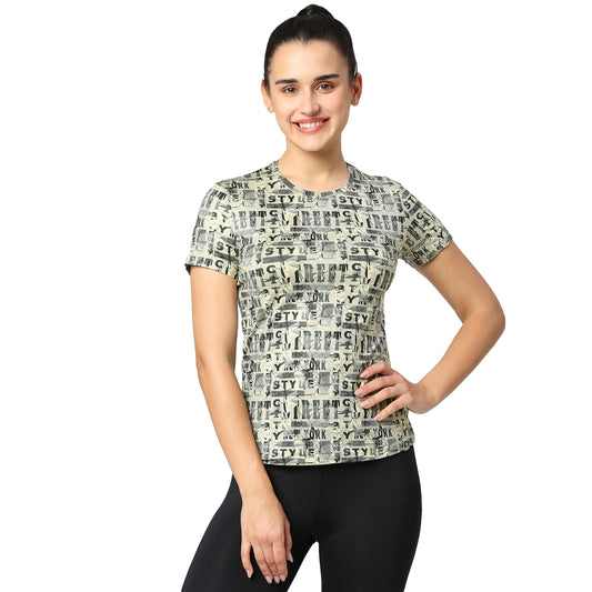 TEXTURED PRINTED CURVED HEM RUNNING TEE