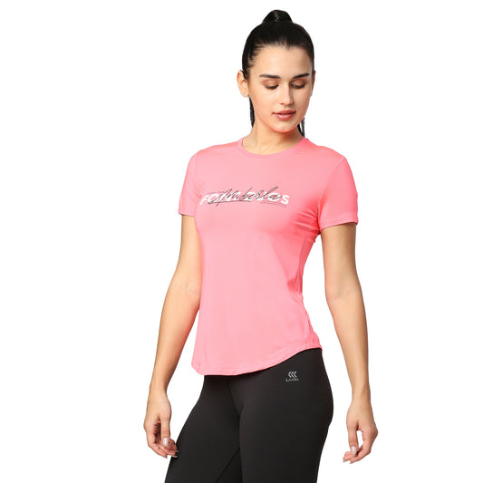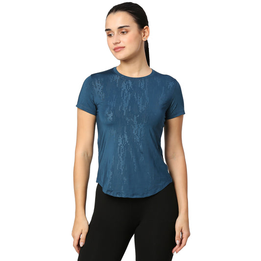 CURVED HEM EMBOSS PRINT GYM WORKOUT TEE