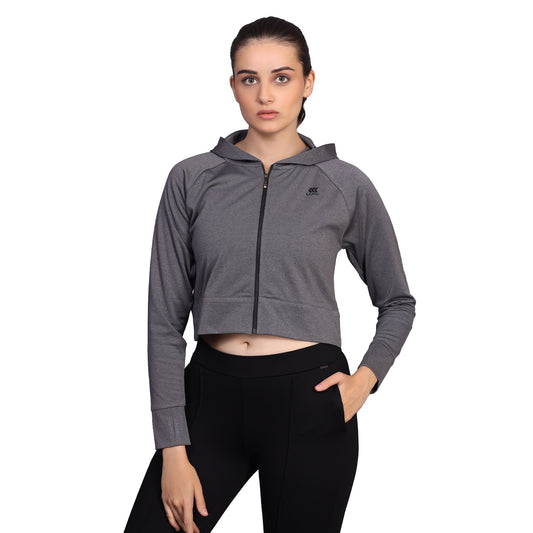 GREY MELANGE ZIP UP SPORTS CROP JACKET