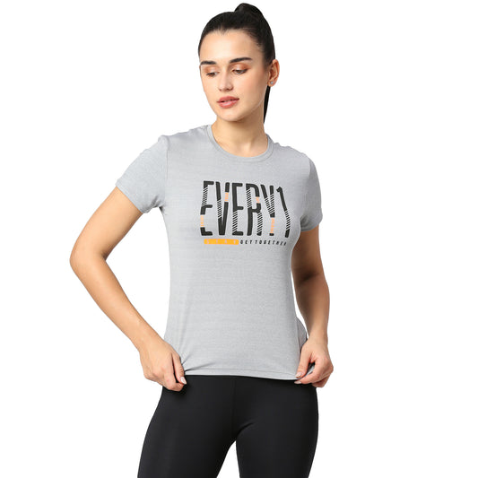 JUST-DRY GREY MELANGE WORKOUT T-SHIRT WITH SPLIT HEM