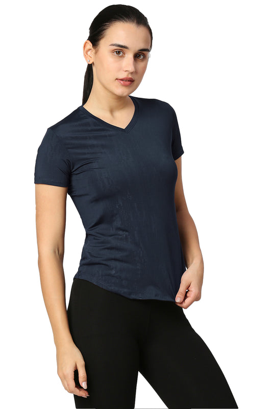 -23% OFFV-NECK CURVED HEM EMBOSS GYM T-SHIRT