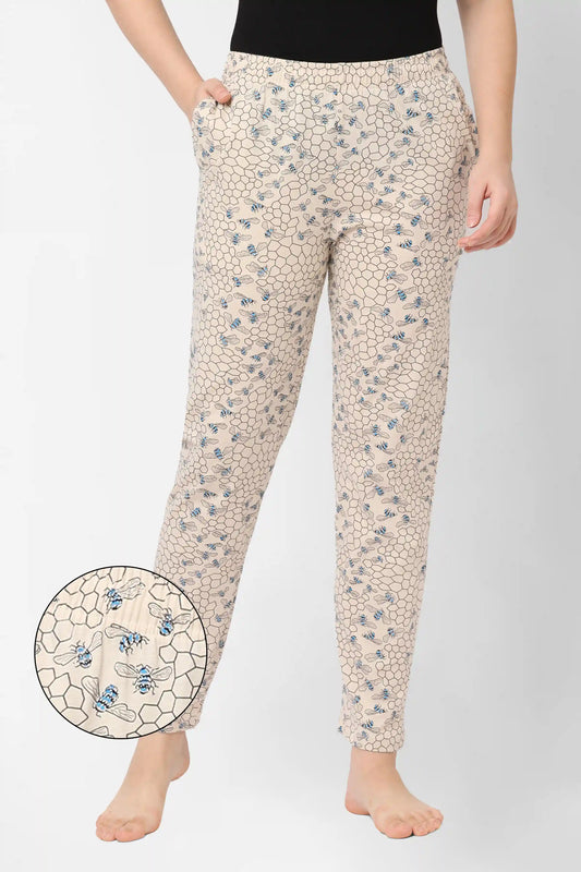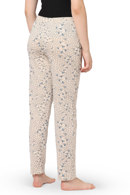 WOMEN'S COTTON PRINTED PYJAMAS WITH HONEYBEE PRINT & SIDE POCKETS