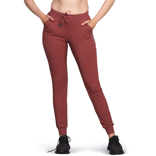 WOMEN SLIM FIT LIGHT BERRY COTTON TRACK PANTS
