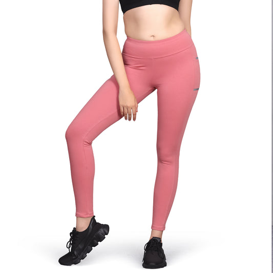 WOMEN'S COTTON SPORTS TIGHTS WITH SIDE MOBILE POCKETS & MID-RISE WAISTBAND