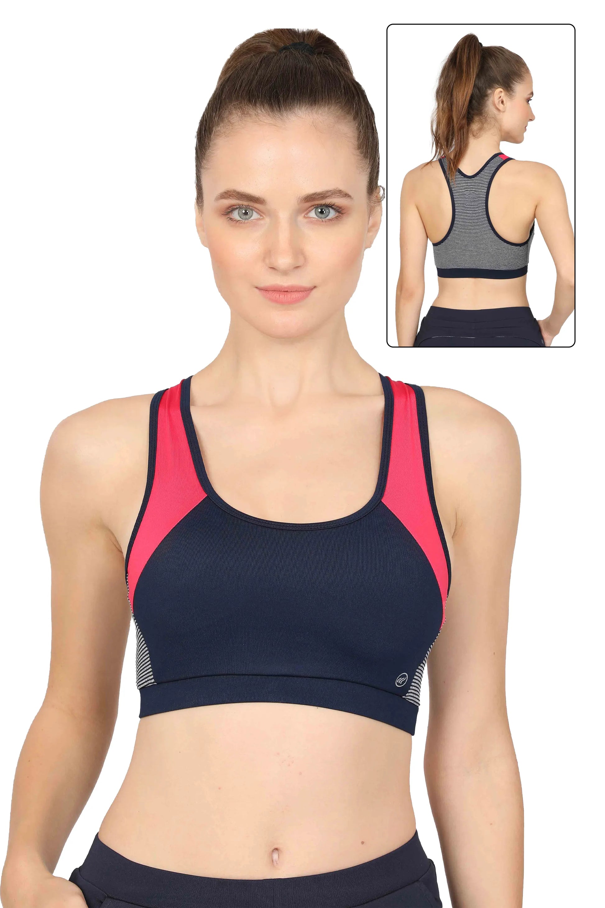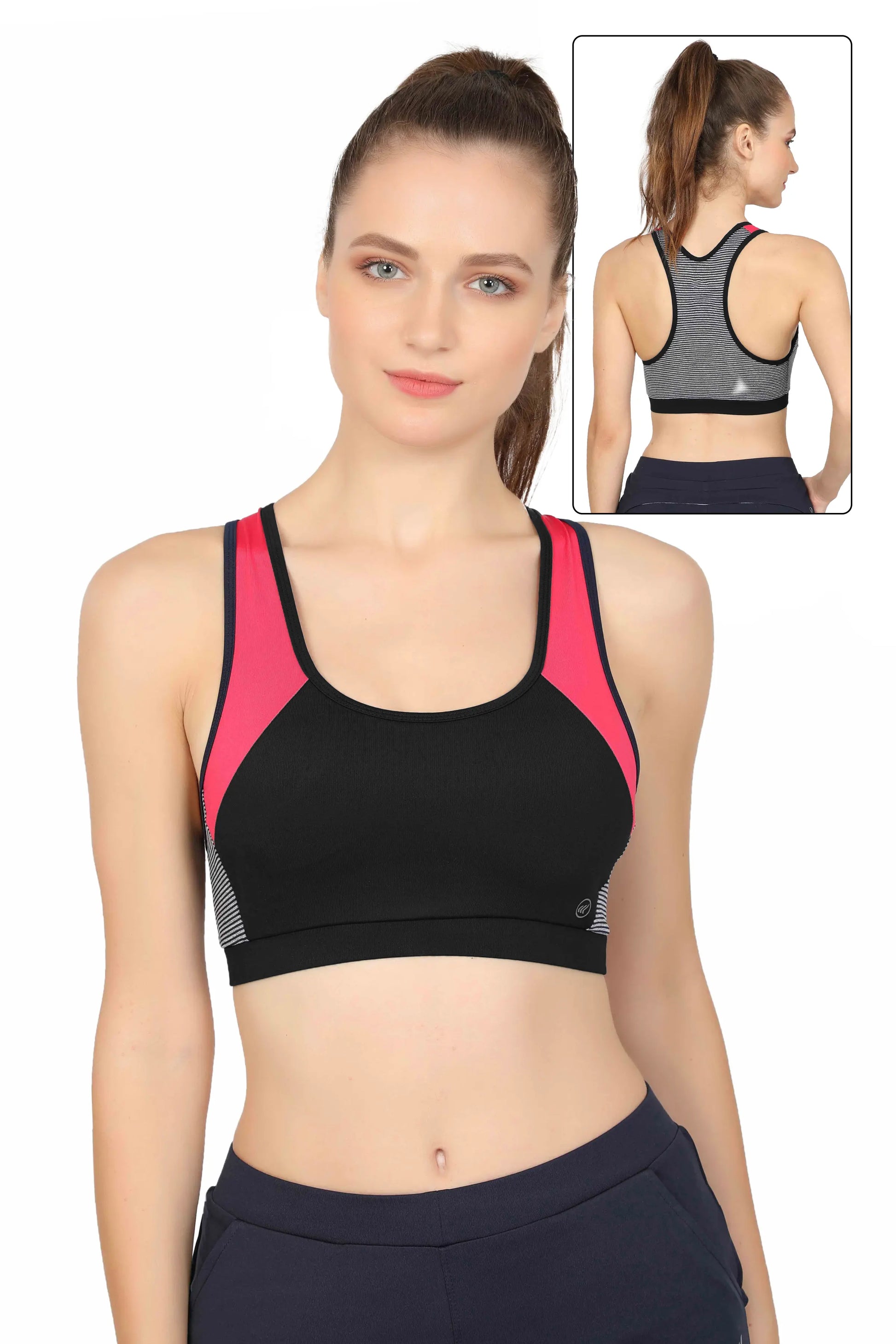 Sports bra from Laasa Sports is a must-have for women who love's a fit and active lifestyle. Made of polyester plain and 6% of spandex knit provides superior comfort & maximum stretch. Striped rayon mesh panels on side for better airflow removes excess heat during workouts or sports activities. Soft elasticized waistband on under-bust keeps you comfortable and secure fit. Perfect for running, dance and other fitness workouts.