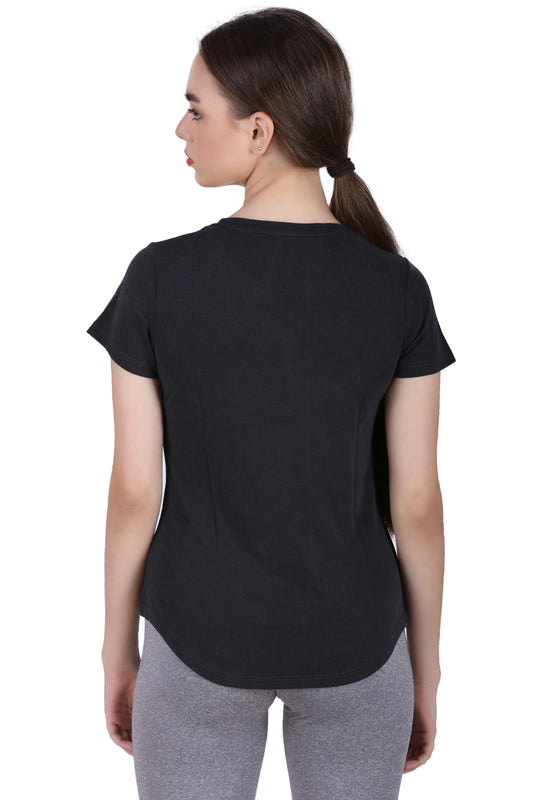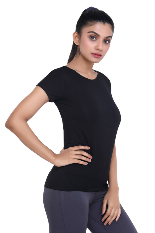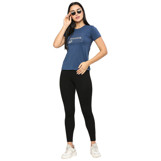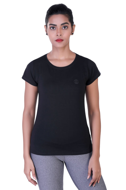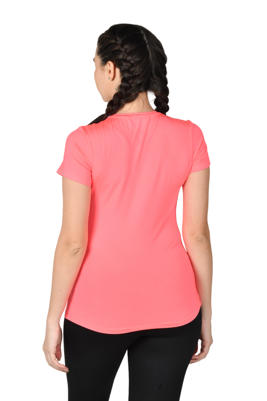 WOMEN’S HIGH-PERFORMANCE POLYESTER T-SHIRT WITH PU PRINT FOR GYM & WORKOUT