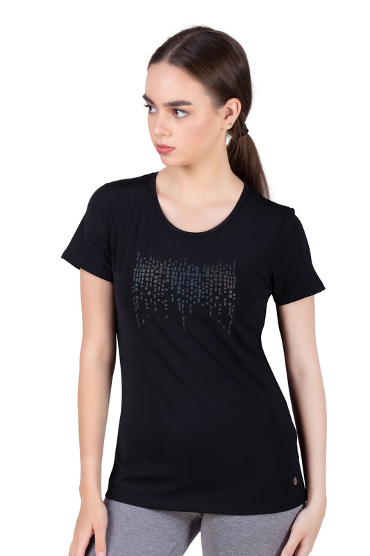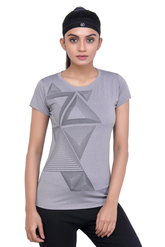 JUST-DRY ALL OVER BOX PRINT WORKOUT T-SHIRT FOR WOMEN