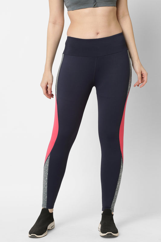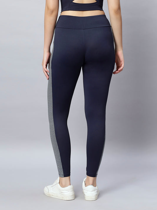JUST-DRY NAVY BLUE SILVER FOIL SIDE PRINT 7/8 ATHELTIC TIGHTS