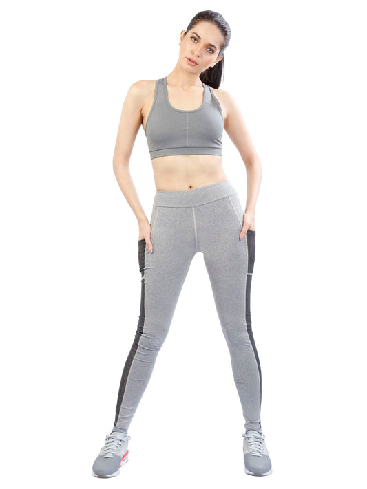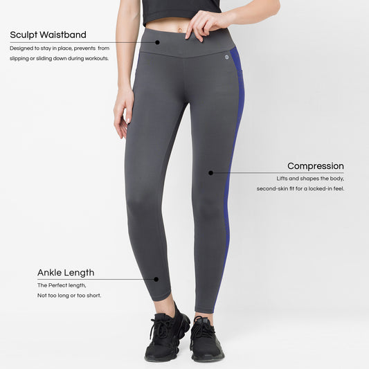 GREY 7/8 REFECTIVE SIDE TAPE RUNNING TIGHTS