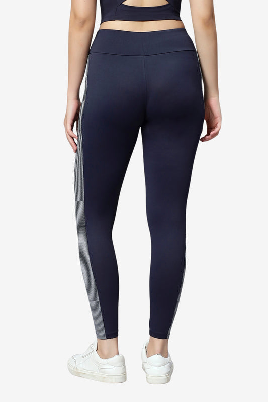 JUST-DRY NAVY BLUE SILVER FOIL SIDE PRINT 7/8 ATHELTIC TIGHTS
